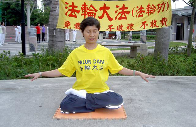 李艳秋,46岁,现职为台湾一所学校的人事主任,一年前开始学炼法轮功。原本她是位桌球好手,隶属于桃园桌球委员会,南征北讨,得过无数奖项。但是好景不常,2年前因病开刀,开刀后医生嘱咐不能剧烈运动,等于宣告她无法再从事最喜爱的桌球运动了。百般无奈的她,开始想学一些比较柔和的运动或气功。因为生病的关系,此时萌生了寻求心灵慰藉的渴望,于是她开始到庙里找些经书来看,但总看不明白那些梵文背后的真实意义。