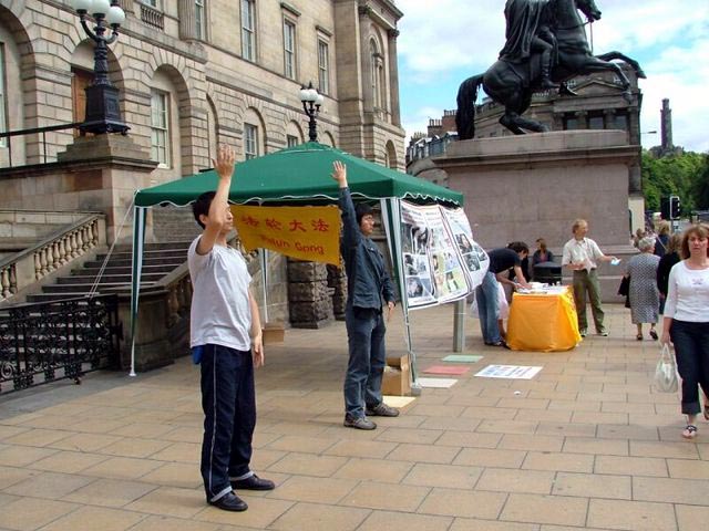 英国爱丁堡艺术节起源于上世纪40年代,据组委会估计,今年的爱丁堡艺术节将会吸引近2万名来自世界各地的游客。爱丁堡艺术节伊始,法轮功学员于8月6日在爱丁堡王子大街(Princes Street)举行了洪法和讲真象活动。
