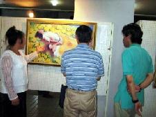 为了在短时间内让更多的人来观展,学员们联系了报社让上万份真善忍美展传单放在报纸里发送;为了让揭露迫害的画能展出,学员们向市人权机构讲真象,还持续向馆长讲法轮功洪传世界及在中国长达6年的受迫害真象,终于,明白了真象的馆长同意揭露迫害的画展出。对每一位来观展的人,学员们都主动介绍每幅画的由来及背后的真实故事,有些人是含着眼泪看完画展的。