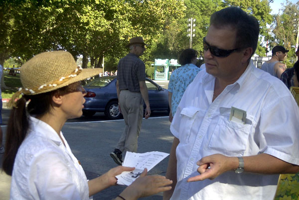 听闻真象后的人们眼里的迷惑渐渐消去,有更多的游人表示,已经听说过法轮功,以及了解迫害真象。站在展台前,你常常会听到:“哦,我从杂志上看到了(法轮功的报导)”;“我已拿过你们的资料,谢谢!”;“那位到中国去的美国公民(李祥春)被放回来了吗?”
