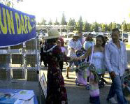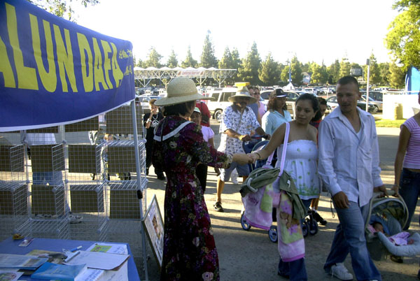 每年,集商贸活动、娱乐消闲为一体的,盛大的加州博览会都会吸引当地及周边地区近百万人次的游客前往。当地法轮功学员自2000年开始,每年都申请到“自由言论区”的展台,这是博览会特别开辟,且不收费用,让人们发表言论、主张的区域。