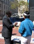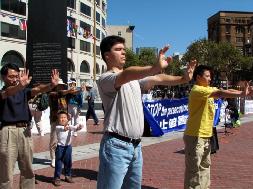 湾区电脑工程师史帝夫(Steve Ispas)补充说,美国公民─法轮功学员李祥春,已被非法关押两年多,目前仍受到洗脑等酷刑折磨。他呼吁美国总统布什,在下周举行的联合国大会中,与胡锦涛会面时,要公开要求他终止迫害法轮功,并立即释放李祥春。