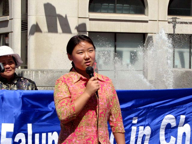 14岁的尚静如表示,在中国有很多想我一样的小朋友,因父母修炼法轮功被迫害致死,而无家可归;想上学,也不行。她呼吁叔叔阿姨,帮助营救这些在中国受苦的法轮功孤儿;并现场为围观者演唱《秋雨》。歌词中唱到:“我想家,想回家;秋雨不停下…。我想上学,想上学;秋雨不停下…。”她还唱道:“叔叔阿姨莫惊讶,送上一只千纸鹤,祝你一生好、平安。”