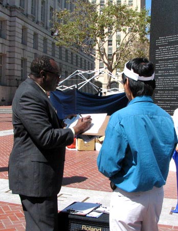 当天的活动吸引了不少路人围观,有的表示已经听说法轮功,并对迫害仍在发生表示气愤;有不少路人签名支持反迫害;还有的询问炼功点,并有的当场学功。