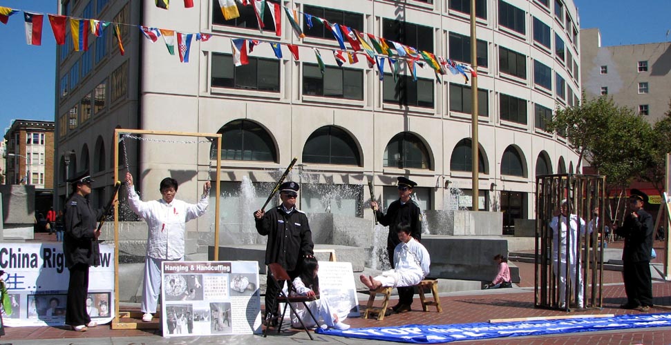 ![]() 路人纷纷驻足观看真人演示受酷刑 | ![]() 路人纷纷驻足观看真人演示受酷刑 |