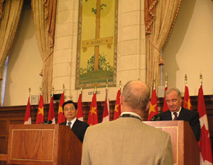 “就像我在我的评论里提到的那样,…我还提到了法轮功问题。”加拿大总理马丁在回答罗杰史密斯的问题时说,“我们相信经济发展和更好的国家管理都不只是需要开放和透明度,还需要对人权的理解。”