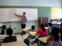 教三年级的孙老师以前在国内教大学,有教小孩子学中文的经验。她现在美国的公司里教中文。她喜欢问答式教学,让学生积极参与、并当堂掌握所学课程。