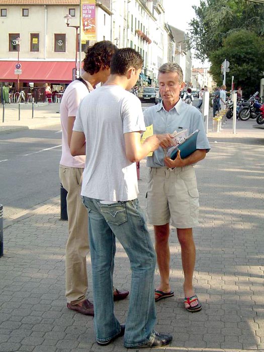洛林地区的一位常务委员会参事碰巧路过,看到真象展位;当了解到迫害真象后,很受触动,留下他的名片,并告诉学员,如果还有其他受迫害的资料,都可以直接寄给他。