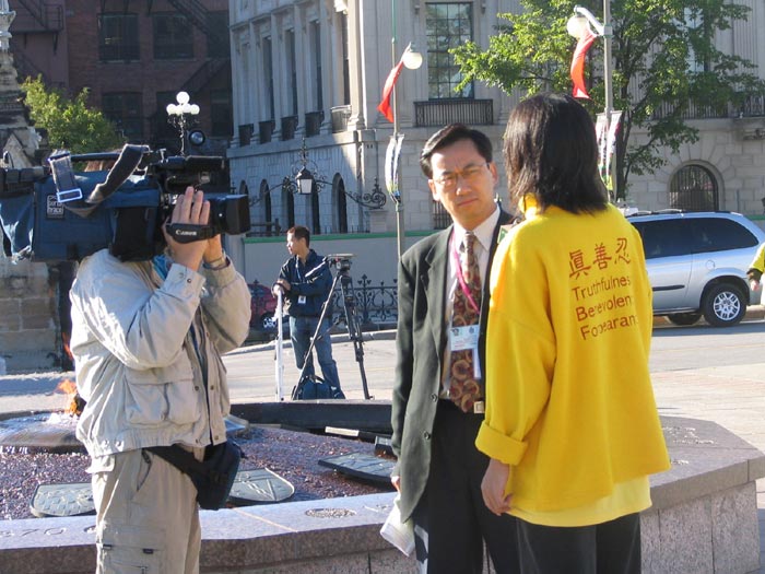 加拿大媒体在采访渥太华法轮功学员