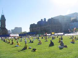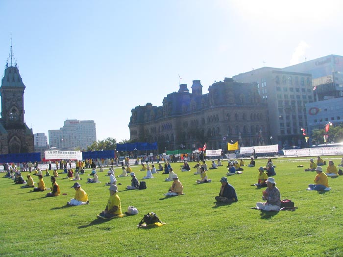 胡锦涛访问渥太华的当天,法轮功学员在国会山庄前的草坪上集体发正念