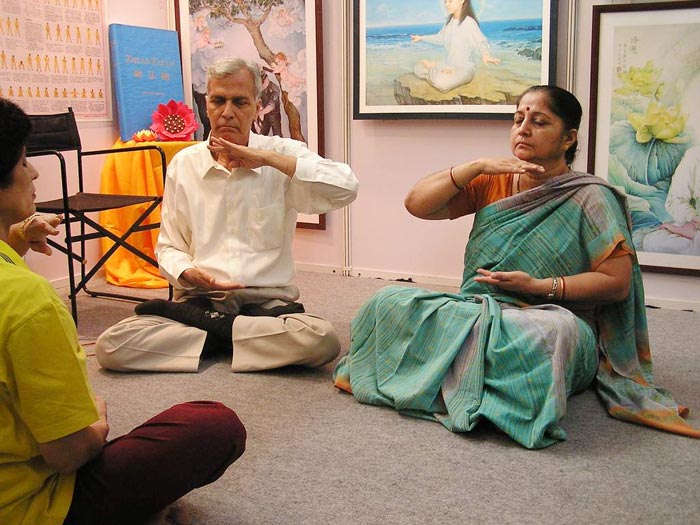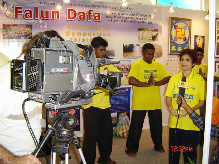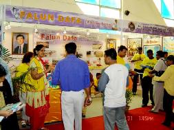 十名斯里兰卡的学员和来自印度孟买,海德拉巴和本格拉等城市的学员也参加了书展。学员们巡回在大展厅开阔的地方演示功法,派发传单。9天的书展期间,学员每天都派发出数千张英文和印度语的传单。这是让人们了解法轮大法,并向他们讲清真象的好机会。许多人想知道,为什么在这个充满商业气息的书市上,我们却向他们提供了这么有益的东西,而且还是免费的。