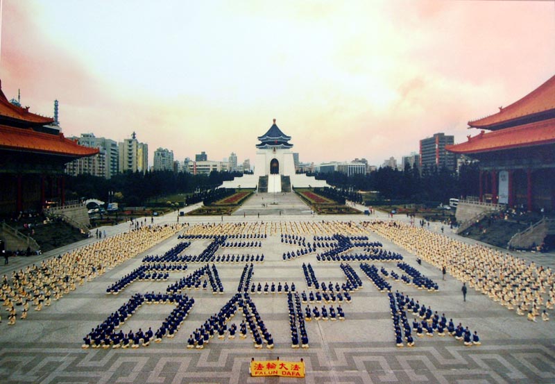 “法轮大法创始人李洪志先生,于1997年11月16日首次来台北市演讲,法轮功正式传入台湾。1999年‘7.20’后,台湾修炼法轮大法人数不断攀升,并受到政府与民间的支持,目前约有三十万以上的人炼习,近一千个炼功点……”导览员娓娓的述说着。