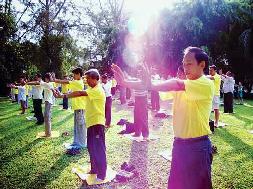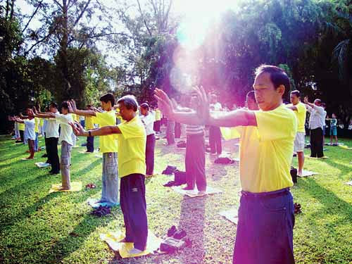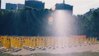 一位学佛的老先生询问法轮功是什么教啊?导览员说,法轮大法也称法轮功,是由李洪志先生于1992年5月传出的佛家上乘修炼大法(不是佛教),以宇宙最高特性“真善忍”为根本指导,按照宇宙演化原理而修炼。当他看到法轮功学员炼功场上的七彩光,非常震撼,直说你们师父会发光,你们师父是神,因此你们弟子也会发光。学员解释说那是修炼人的能量场的体现,是真正的修炼之场。