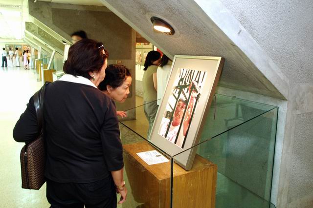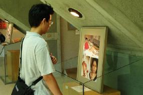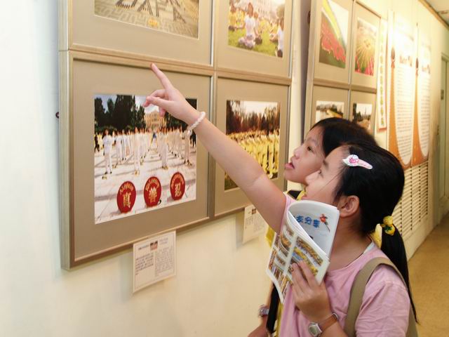 有位年约三十几岁的太太,远从台北县三峡而来。她说,她是个不敢一人出门的人,但很奇怪有股力量带她来到这里看摄影展。一位法轮功学员为她导览图片。她表示,看到法轮功学员顿时感到非常安心,不害怕了。经交谈得知她曾经看过一点法轮功书籍,她认为法轮功真不一般,与一般的佛教都不一样,感受到学员的真诚与和善良。