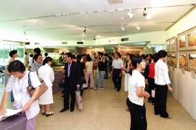 ![]() 学生们也来看摄影展 | ![]() 周末假日展览场挤满了参观的人群 |