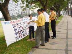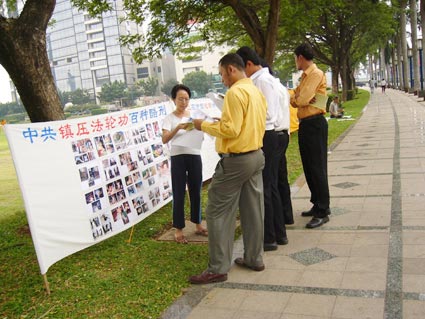 警察听后也惊呆了。最后他们决定不采取任何行动,公开表达言论自由,是每个公民的权利,受到国家1998年第九号宪法的保障。“中共镇压法轮功百种酷刑”图片展顺利进行到结束。