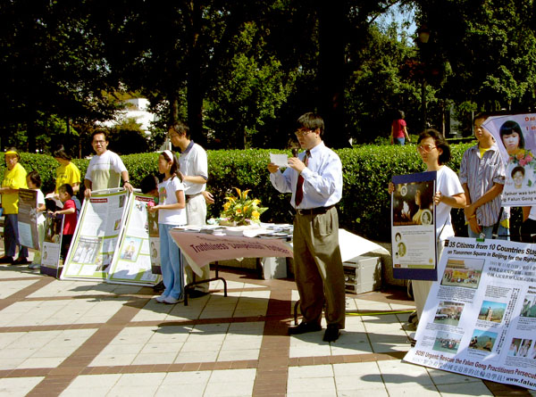 有的游客在买了书或是教功录像带之后,还询问了在哪可以学功。也有的游客说,看了大法的网页后,知道法轮功并不象中共当局宣传的那样;还当时就请学员教炼功动作。