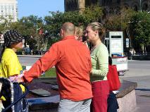 学员向游客讲解发生在中国对法轮功学员的迫害