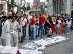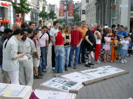 除了传单以外,我们也散发了许多荷兰语版的《·九·评*共产党》。这篇大.纪.元;的系列社论是迄今为止出版的最详尽、透彻揭露中共黑暗历史的文章。《·九·评*》描述了中共的发家史及其使人民在恐惧中屈从的历次整人运动。说荷兰语的人们如今可以系统了解到中共自1949年以来的杀人历史,从消灭整个阶级到大跃进带来的大饥荒,到文化大革命,到“六。四”天安门屠杀。《·九·评*》还揭露了仍在中国发生的对法轮功修炼者的迫害。