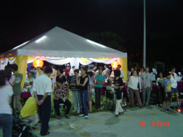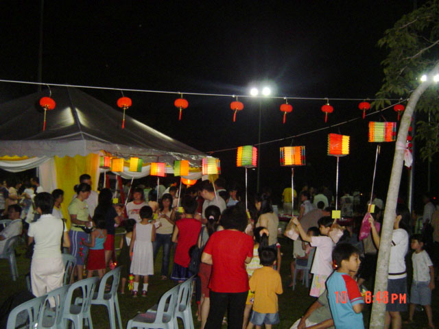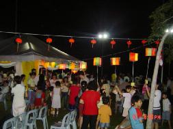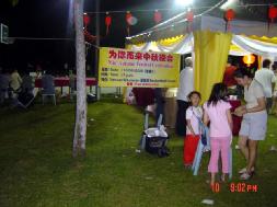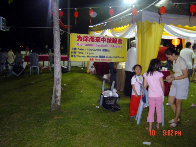 中秋晚会于傍晚7时开始。居住于附近的居民的家长们都带着他们的小孩前来参加。出乎学员意料之外的是来参加中秋晚会的居民十分踊跃,造成食物供不应求。