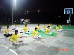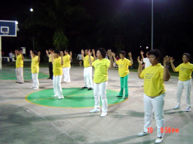 学员于当晚8时许为大众呈献表演,其中包括腰鼓舞和扇子舞。最后法轮功学员为大家演示五套功法。学员也在当场发真象资料让更多的人能了解法轮功的真象。除此之外,学员也准备了猜灯谜游戏。居民们踊跃参与。与此同时,家长们陪着小孩子点蜡烛,提灯笼。孩子们一起玩乐。场面十分祥和。