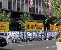 胡锦涛离开纽约,法轮功学员数次近距离送忠告