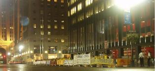 车队本以为从49街出来,转到50街上,就能甩开法轮功学员。可是天意不可违,法轮功学员迅速的从48街的请愿处来到50街口,拉开了巨大的横幅,并一遍又一遍的大声呼唤,“法轮大法好”,“胡锦涛,神和人民给你的时间是有限的”,“法办江泽民、罗干、刘京、周永康”,“法办迫害法轮功的恶警和坏人”“停止迫害法轮功”。同时还有学员已经在公园大道上拉开横幅,等候着车队。