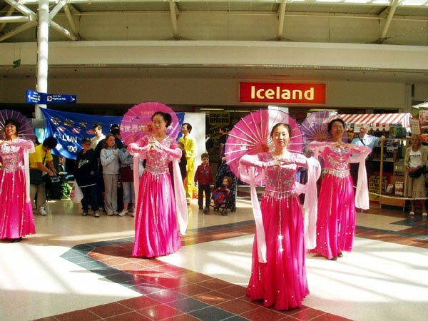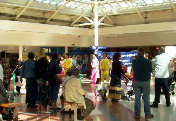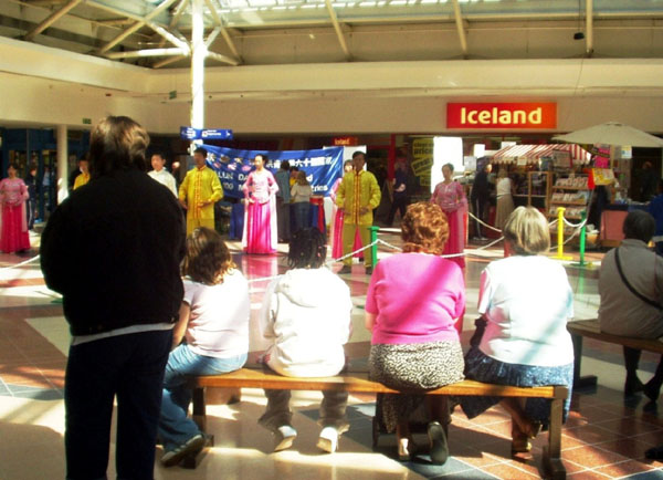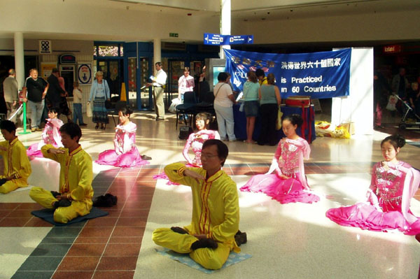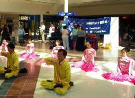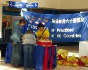 在17日活动那天,学员们向观众展示了祥和舒缓的法轮功五套功法,另一部份学员则向人们分发法轮功真象传单。好几位观众向发传单的学员询问哪里可以学功,表示想学。学员向他们介绍了当地学员义务办的免费教功班。