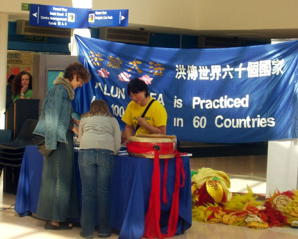 一位在牛津上大学的英国男士对一位华人学员说,一、两周前他在剑桥也遇到了法轮功。他还对学员说:“这儿(英国)欢迎你们!”“在这里你们可以自由的炼功,自由的呼吁(停止迫害)。”