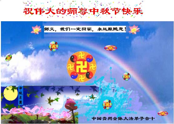 “每逢佳节倍思亲”,值此中秋佳节到来之际,贵州全体大法弟子将我们对师父久久的思念与永远的问候通过明慧送到您的身边,愿师尊中秋快乐!并请接受贵州全体大法弟子永恒的敬意与感恩!