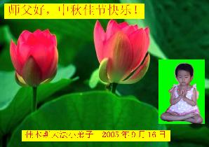 <英文版: http://www.clearwisdom.net/emh/articles/2005/9/18/65062.html>大陆大法弟子恭祝师尊中秋节快乐(三)