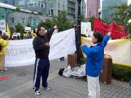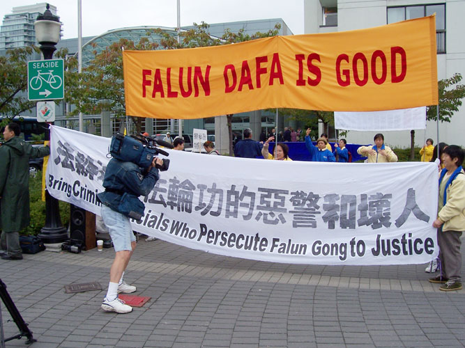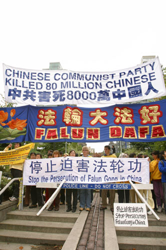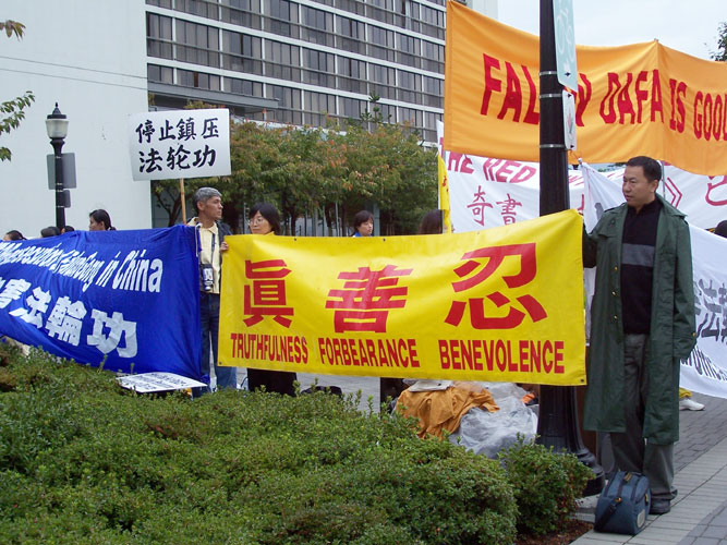 胡锦涛出访美国、加拿大 法轮功学员和平请愿