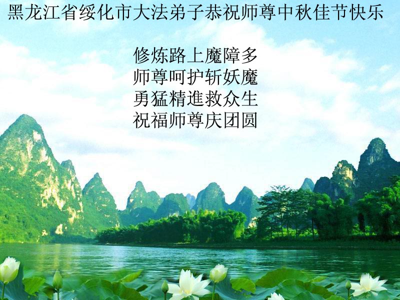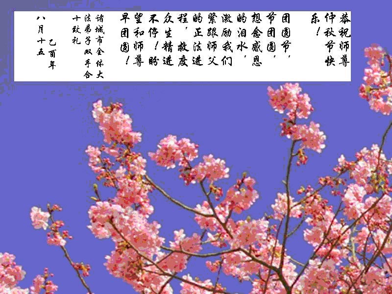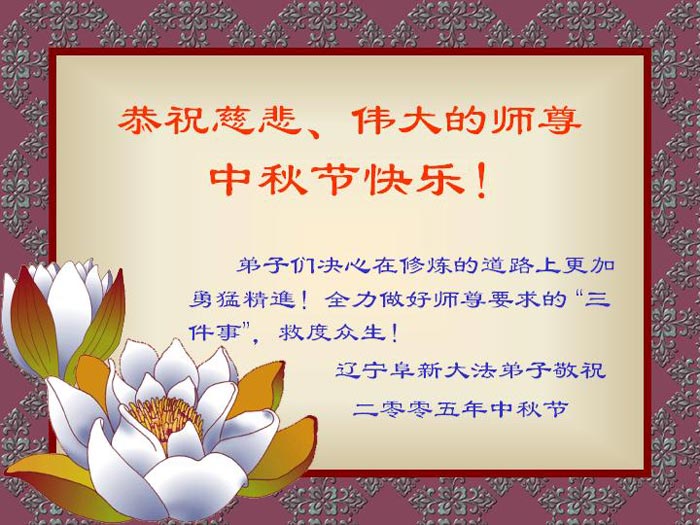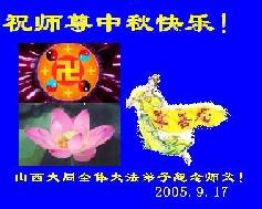 <英文版: http://www.clearwisdom.net/emh/articles/2005/9/18/65062.html>大陆大法弟子恭祝师尊中秋节快乐(四)
