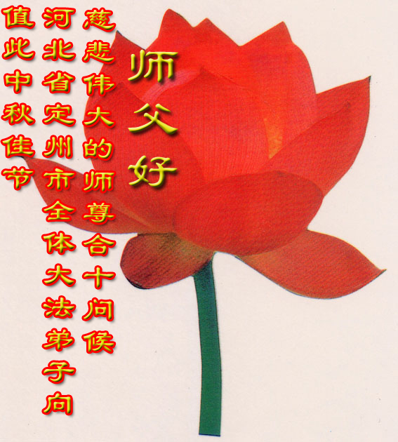 值此中秋佳节,河北省定州市全体大法弟子向慈悲伟大的师尊合十问候:师父好!