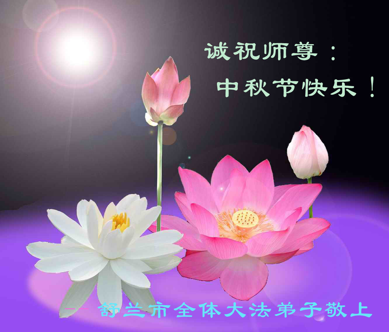 胶州大法弟子想念您!值此中秋佳节来临,我们向您致以最崇高的敬意与最真挚的问候!