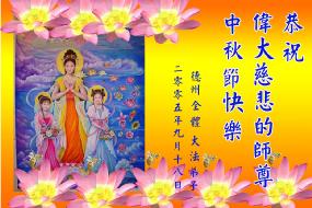 值此中秋之际,山东东营及胜利油田大法弟子恭祝慈悲伟大的师父中秋快乐。在目前的正法中,我们一定谨记师父的教诲,做好师父要求的三件事,以正法的基点正确对待遇到的一切事情,成为一个真正的大法弟子!
