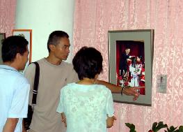 导览人员自己刚好是这一幅的主角,解说起来很有心得。参观者也印象深刻,觉得只要真诚的心,不需太多语言,就能将“真、善、忍”的精神传达出去,很感人。