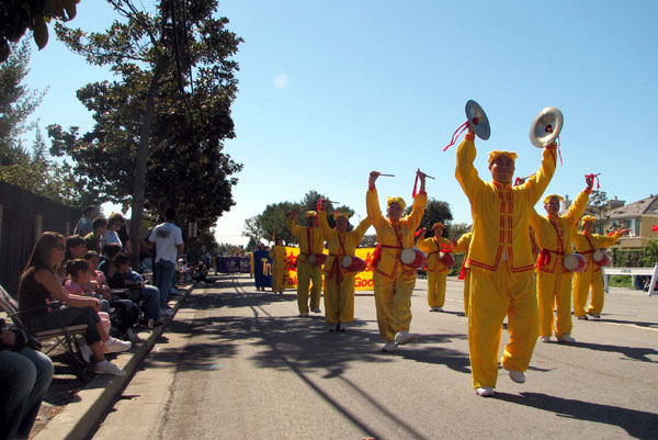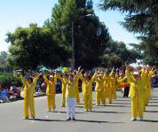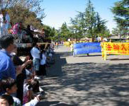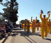 ![]() 英文真善忍横幅 | ![]() 炼功队 | ![]() 腰鼓队 |