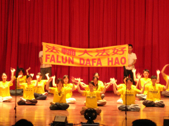 2005年9月13日,台湾成功大学法轮功社团参加了学校举办的迎新晚会——新鲜人之夜。台南县市修炼法轮功的青年学子在成大成功厅表演了优美的法轮功五套功法,并讲述了法轮功在中国大陆被迫害的真象。