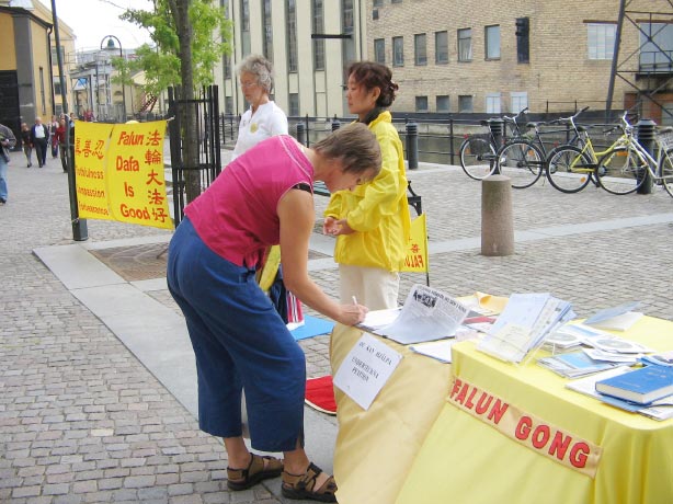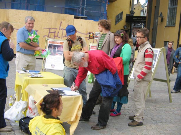 许多人看了祥和的功法演示及图片展后对中共当局残酷镇压法轮功十分不解,他们纷纷签名支持反迫害。