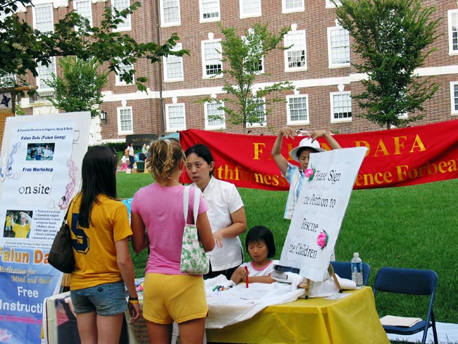 【明慧网2005年9月27日】9月18日是特拉华州一年一次的“社区日”(Community Day),这一天也是农历中秋节。当地的法轮功学员在“社区日”上呼吁人们关注在中国受