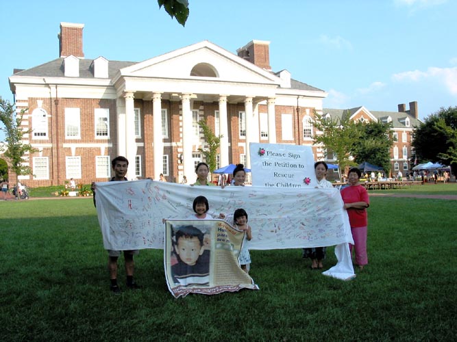 华府明慧学生吁布什、劳拉营救中国孤儿(图)