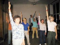 在学员们举办的教功班上,人们在学了第一套功法后就有了良好的反应,人们普遍感到精力充沛。