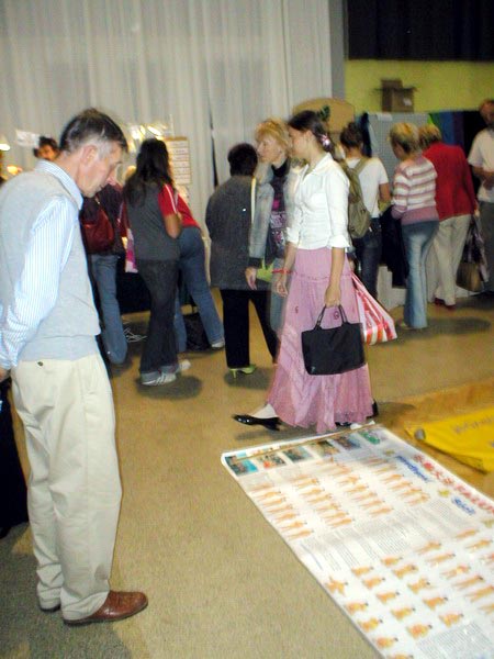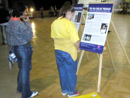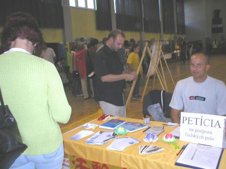 学员们的摊位还引起了斯洛伐克国家电视台记者的注意。电视台的记者对我们进行了采访。记者对法轮功免费教功印象深刻,她认为法轮功简单易学。随后她在呼吁停止迫害的请愿信上签了字。
