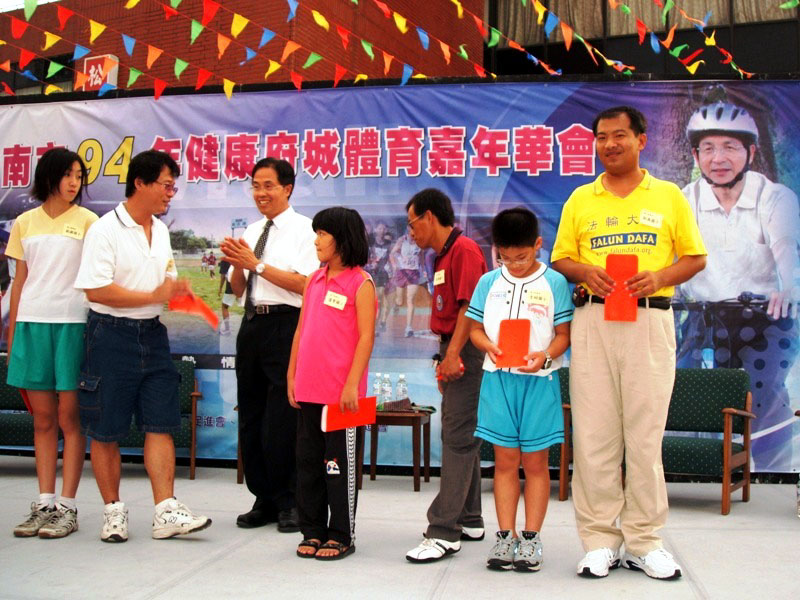 ![]() 台南市94年度健康府城体育嘉年华表扬大会 | ![]() 法轮功学员表演第三套功法 ─ 贯通两极法 |