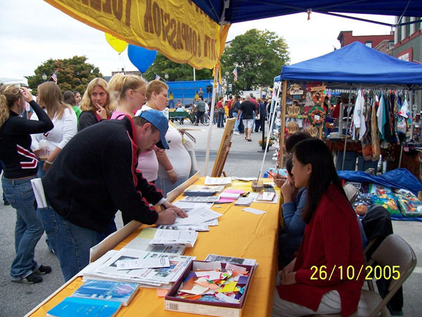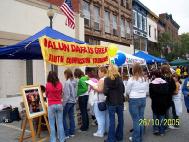 【明慧网2005年9月29日】2005年9月25日,纽约上州的法轮功学员们参加了当地的社区活动,他们的文艺表演和功法演示受到了民众和参加活动的当地官员的热烈欢迎。学员们还设置了摊位,介绍法轮功真象并呼吁人们关注在中国受