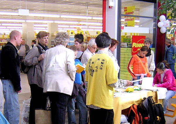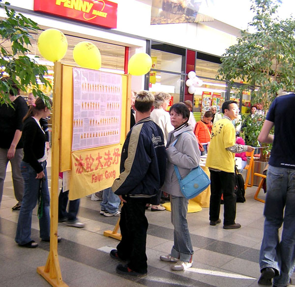 在这两天中,许多善良的德国民众了解了有关法轮功遭受中共迫害的真象,有的表示要捐款帮助那些被迫害的大陆学员,有的则主动索要了征签表和真象资料,以便回去后将真象传给亲朋好友。也有不少人想要学习功法,学员们高兴的邀请他们参加每周的集体炼功。