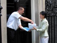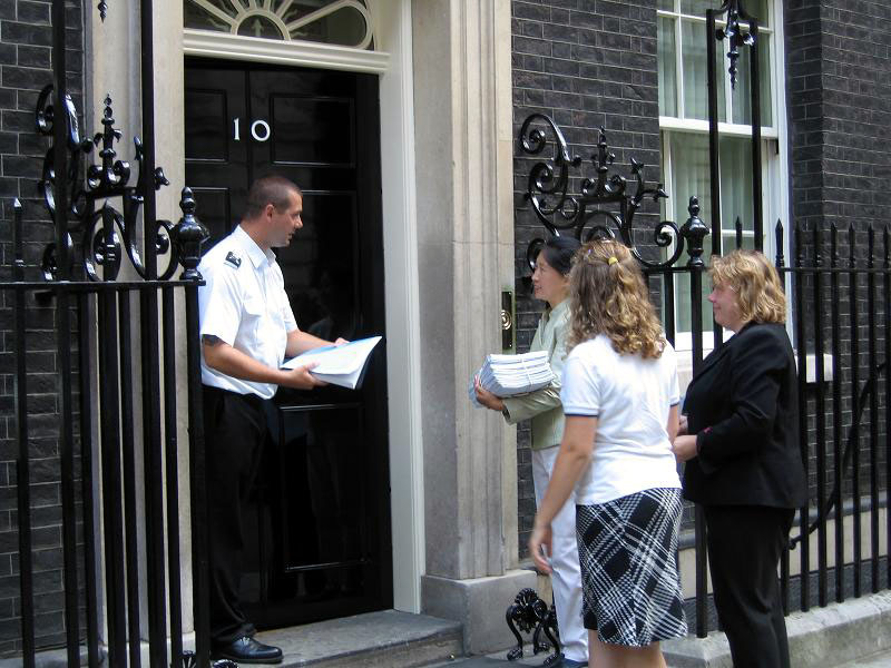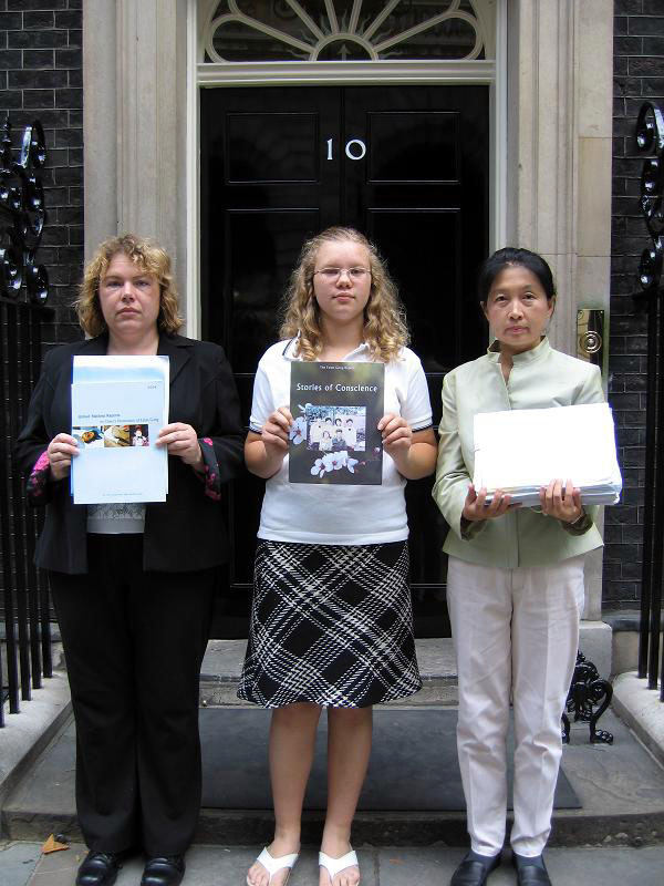 由于布莱尔首相将于9月5日前往中国参加中英暨中欧高峰会,值此前夕,学员们希望能藉此递交请愿书的机会,再次向英国首相及政府揭露中共恶党对法轮功的迫害,讲清真象,并营救中国大陆遭受非法拘禁及迫害的法轮功学员及其亲属遗孤。一位参与的学员表示,她希望布莱尔能在访华期间抗议中共恶党对一亿人正信的迫害,不要因为一时的政治与经济上的利益,违背了基本做人原则及西方自由民主的立国精神,实际上,西方国家对于这场迫害的不表态,等于是助长了邪恶。学员进一步表示,历史会对每个人都作出评判的,希望布莱尔首相能够藉此访华的机会,不负其历史责任,正确的选择他的未来。