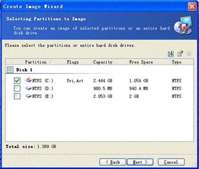 2.选择想要备份的分区,我们选择Disk1上的C盘,然后点击“Next”