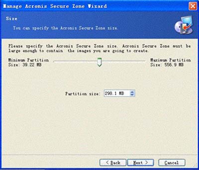 至于Manage Acronis Secure Zone(管理安全区),可以调整Secure Zone的大小和位置。